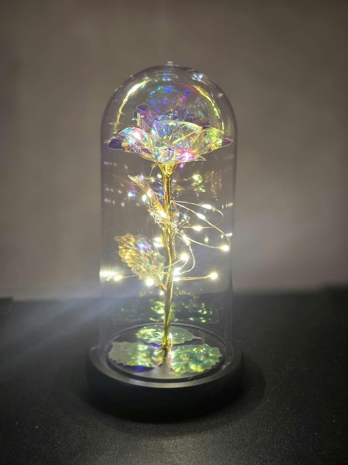 💡 Radiant Glow: Embedded with LED lights, the glass dome illuminates the rose and butterfly, casting a magical ambiance in any room.